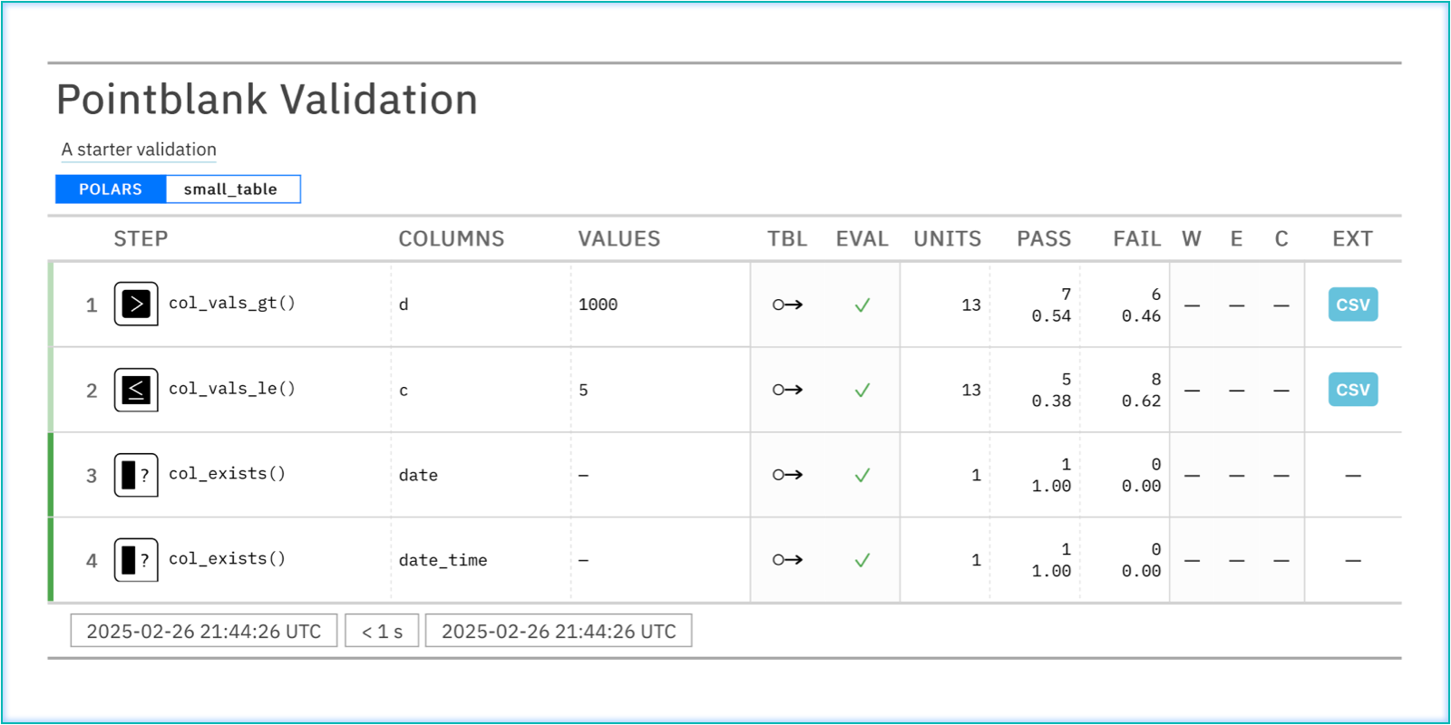 For far more specialized validations, modify the table with the pre= argument before checking it.